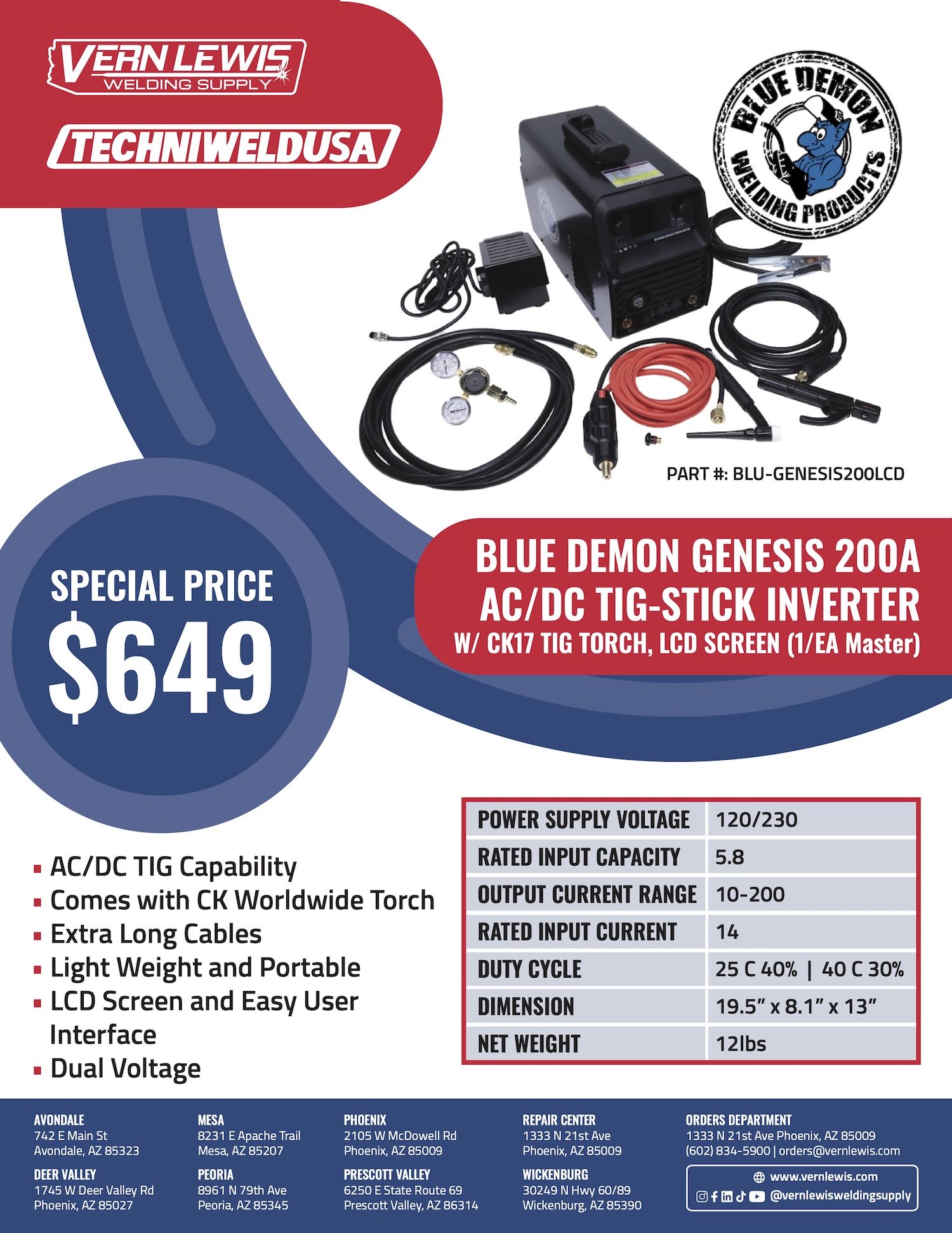 Get a Blue Demon Genesis 200A Welder for the special price of $649!